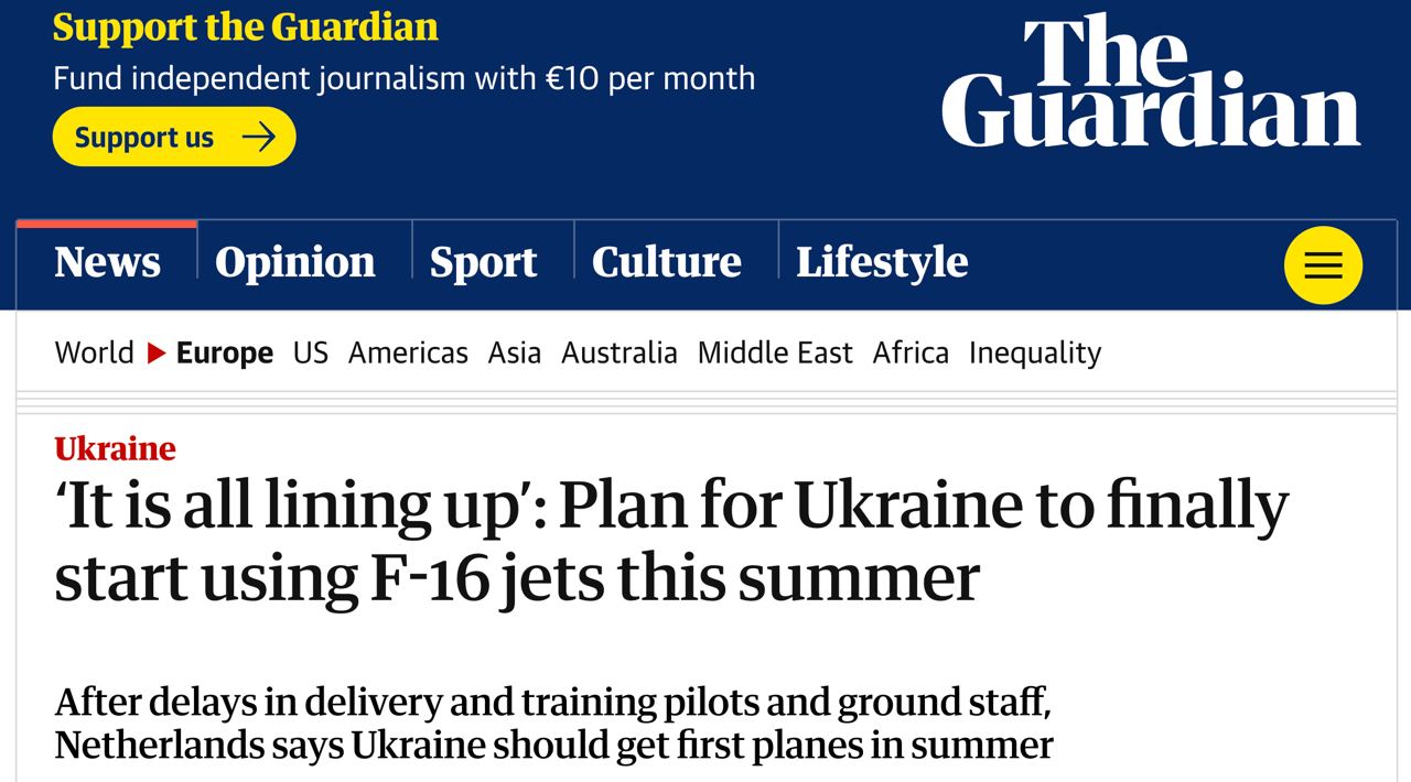 Ранее помощник президента США по национальной безопасности Джейк Салливан заявил, что F-16, которые Соединённые Штаты передадут Украине, будут размещены на её территории.