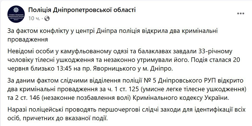 Полиция открыла два уголовных производства - по ч. 1 ст. 125 (преднамеренное легкое телесное повреждение) и 2 ст. 146 (незаконное лишение свободы).