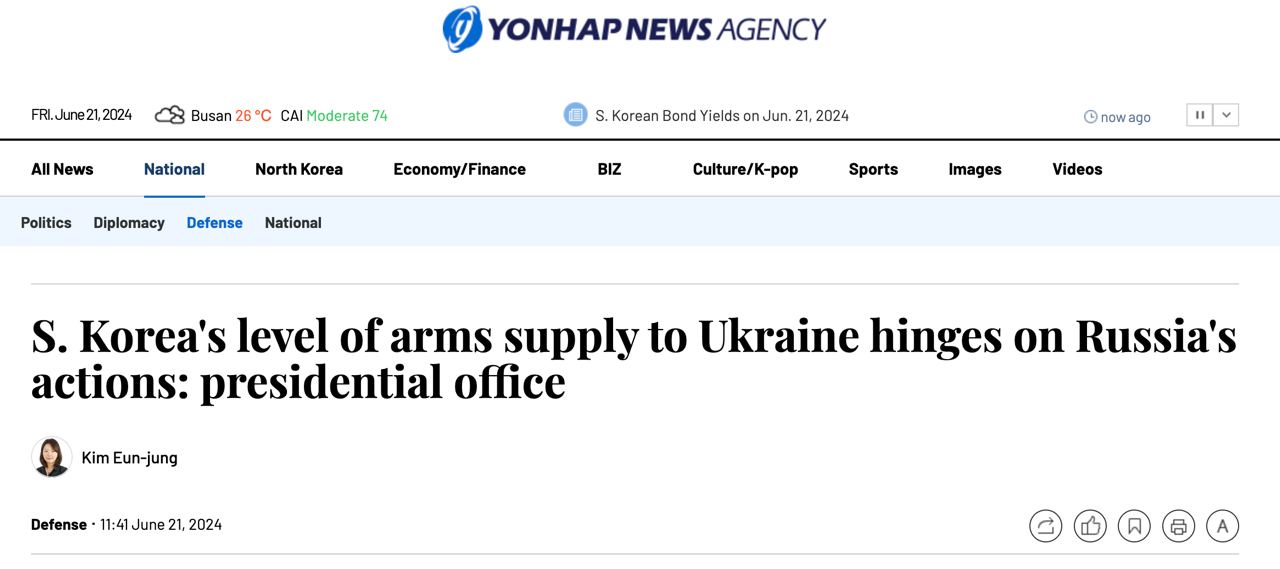 Ранее Сеул официально воздерживался от поставок вооружений Киеву. Хотя американские СМИ ещё в прошлом году писали о том, что неформально Южная Корея передаёт в ВСУ большие объёмы снарядов для пушек.