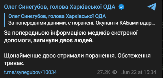 Об этом сообщает глава Харьковской ОВА Олег Синегубов и мэр города Игорь Терехов.