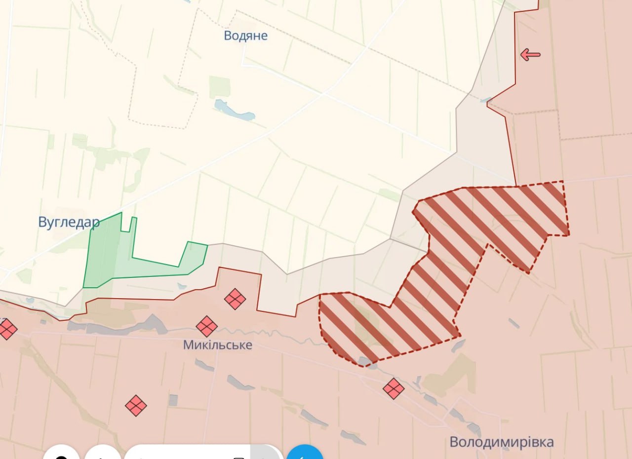 Также российские войска продвинулись к востоку Угледара - со стороны Владимировки. Недавно там же было продвижение в сторону Водяного.