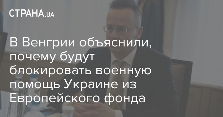 В Венгрии объяснили, почему будут блокировать военную помощь Украине из Европейского фонда