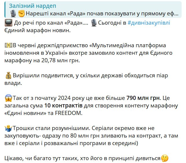 С начала года из государственного бюджета Украины на телемарафон потратили уже 790 миллионов гривен.