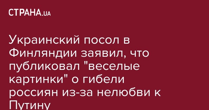 Украинский посол в Финляндии заявил, что публиковал "веселые картинки" о гибели россиян из-за нелюбви к Путину