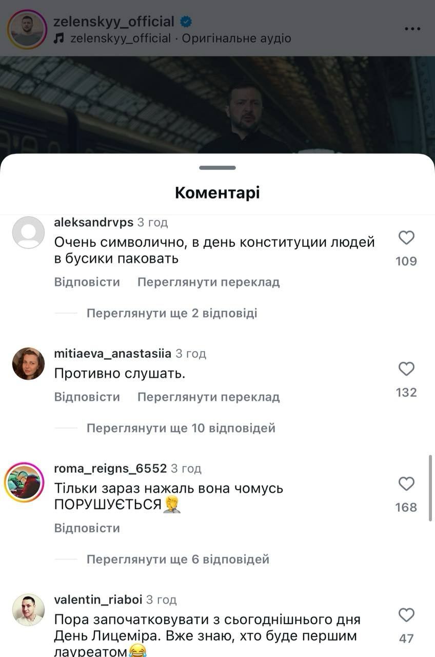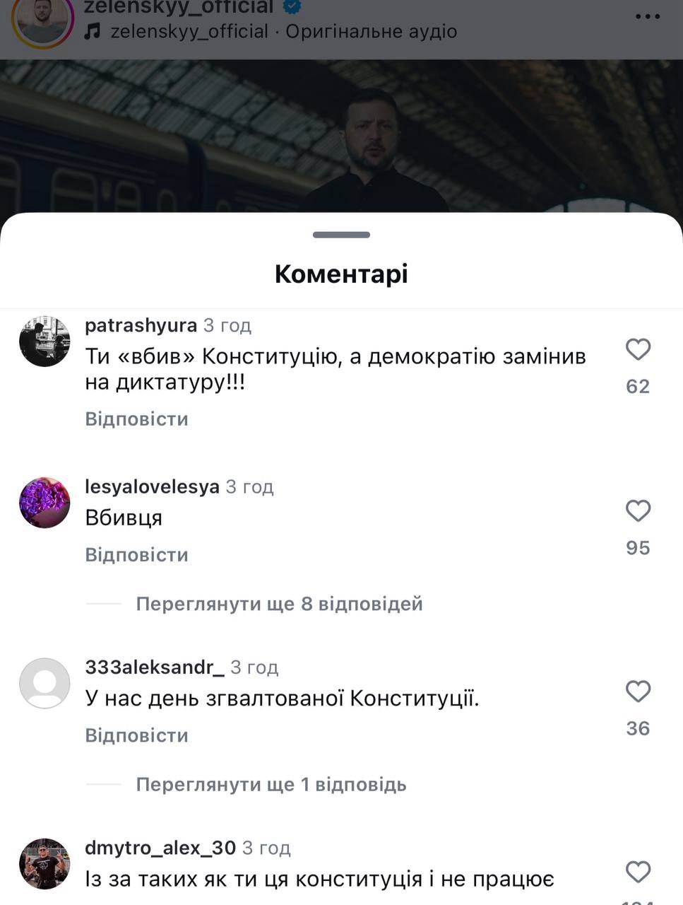 На президента Владимира Зеленского обрушилась волна критики в соцсети Instagram под постом с поздравлением с Днём Конституции.