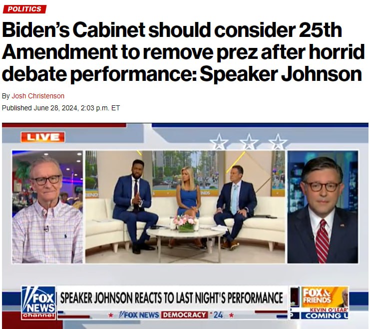 Он отметил, что понимает панику в рядах демократов, но речь идет о всей стране, президент которой явно не может выполнять работу, и теперь свой долг должны выполнить министры и вице-президент.