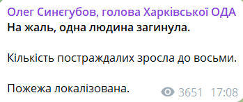 Об этом сообщили мэр города Игорь Терехов и глава Харьковской областной военной администрации Олег Синегубов в своих телеграм-каналах.