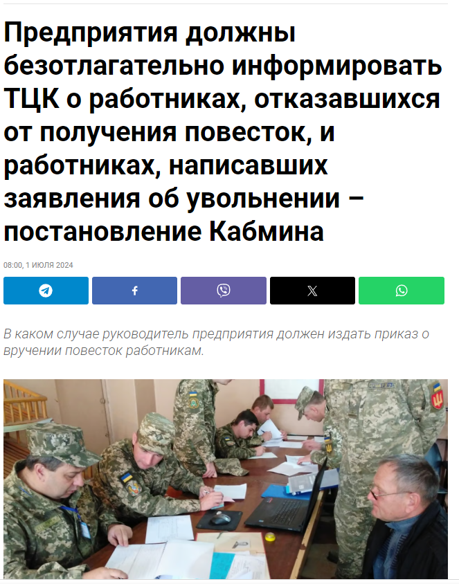 Бизнес должен безотлагательно уведомить ТЦК о работниках, которые отказались от получения повесток или уволились.