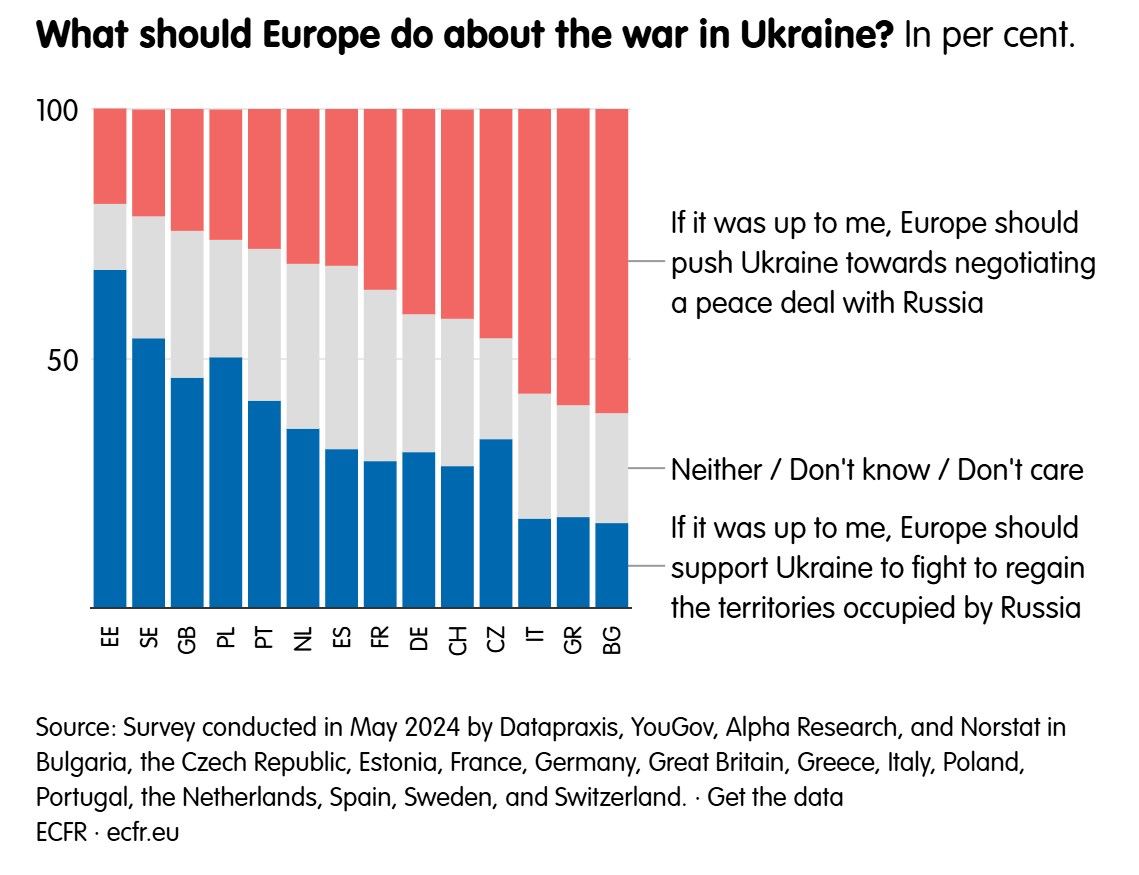 Также, согласно опросу ECFR, крупнейшие экономики Европы выступают за переговоры Украины и РФ.