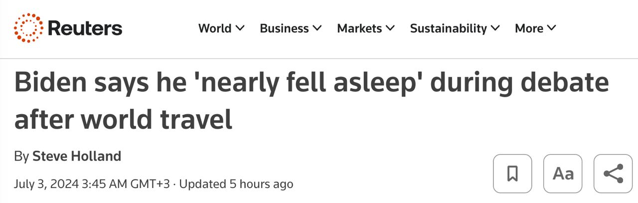 Reuters пишет, что Байден действительно летал в прошлом месяце во Францию и Италию в течение двух недель, но шесть дней перед дебатами он готовился к ним в Кэмп-Дэвиде.