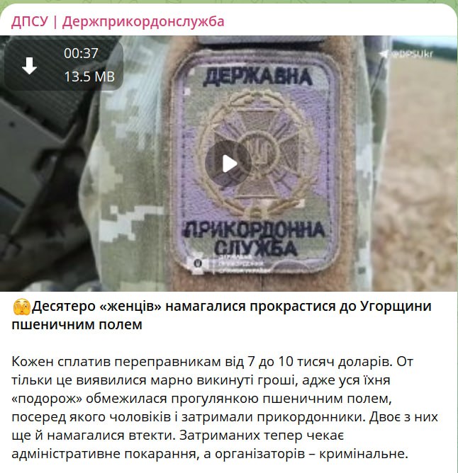По ее информации, каждый заплатил переправщикам от 7 до 10 тысяч долларов. Те направили мужчин на пшеничное поле, где их задержали пограничники.