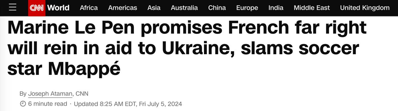 По заявлению Ле Пен, она также намерена отменить разрешение Украине бить французским дальнобойным оружием по территории РФ. Ле Пен подчеркнула, что ее единственная красная линия в отношении Украины — это "предотвращение превращения" Франции в соучастника войны посредством использования французских ракет большой дальности против целей на российской территории.