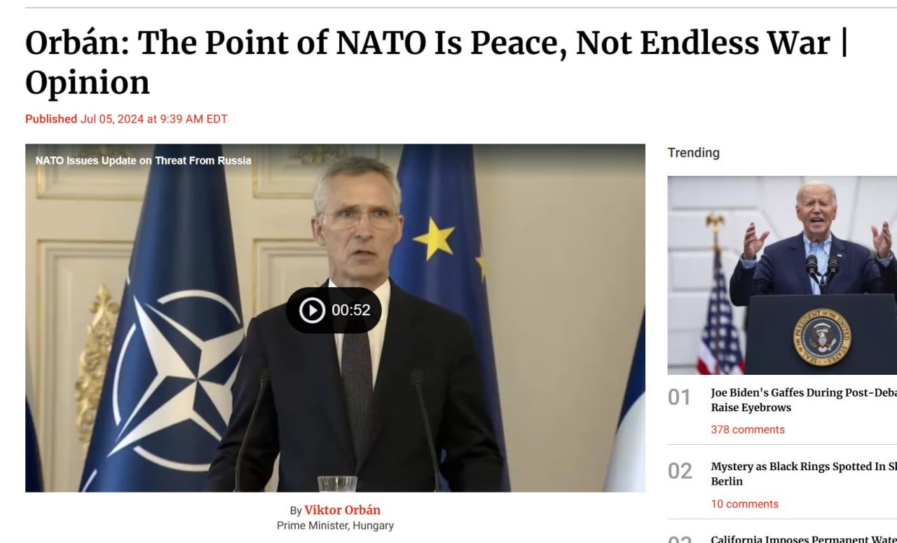 "Это восприятие неизбежной конфронтации функционирует как самосбывающееся пророчество. Чем больше лидеры НАТО будут верить в неизбежность конфликта, тем больше будет их роль в его разжигании", - считает Орбан.