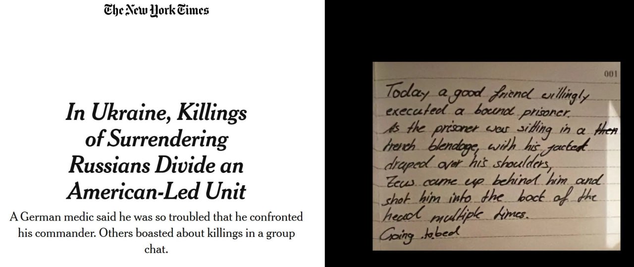 "Затем Казак выстрелил российскому солдату в голову из автомата Калашникова, что, по мнению Гроссе, было убийством из милосердия", - пишет NYT.