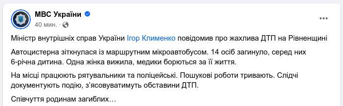 В масштабной аварии на трассе в Ровенской области погибли 14 человек.