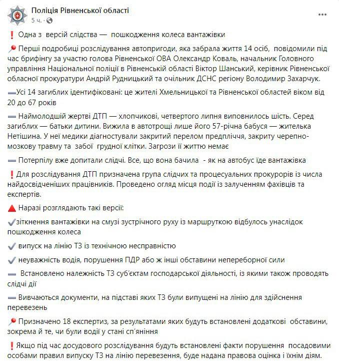 В полиции подтвердили версию "Страны" о причине ДТП в Ровенской области, в котором погибли 14 человек