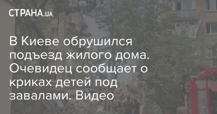 В Киеве обрушился подъезд жилого дома. Очевидец сообщает о криках детей под завалами. Видео