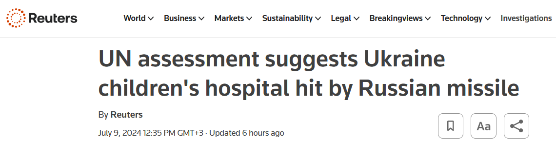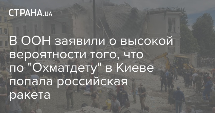 В ООН заявили о высокой вероятности того, что по "Охматдету" в Киеве попала российская ракета