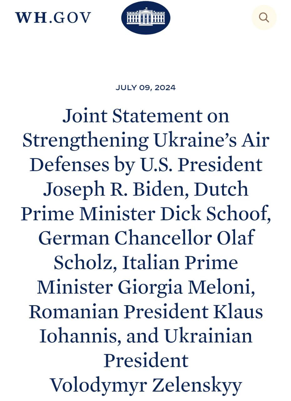 Это "дополнительные батареи Patriot, подаренные Соединенными Штатами, Германией и Румынией; компоненты Patriot, подаренные Нидерландами и другими партнерами, для обеспечения работы дополнительной батареи Patriot; и дополнительная система SAMP-T, подаренная Италией".