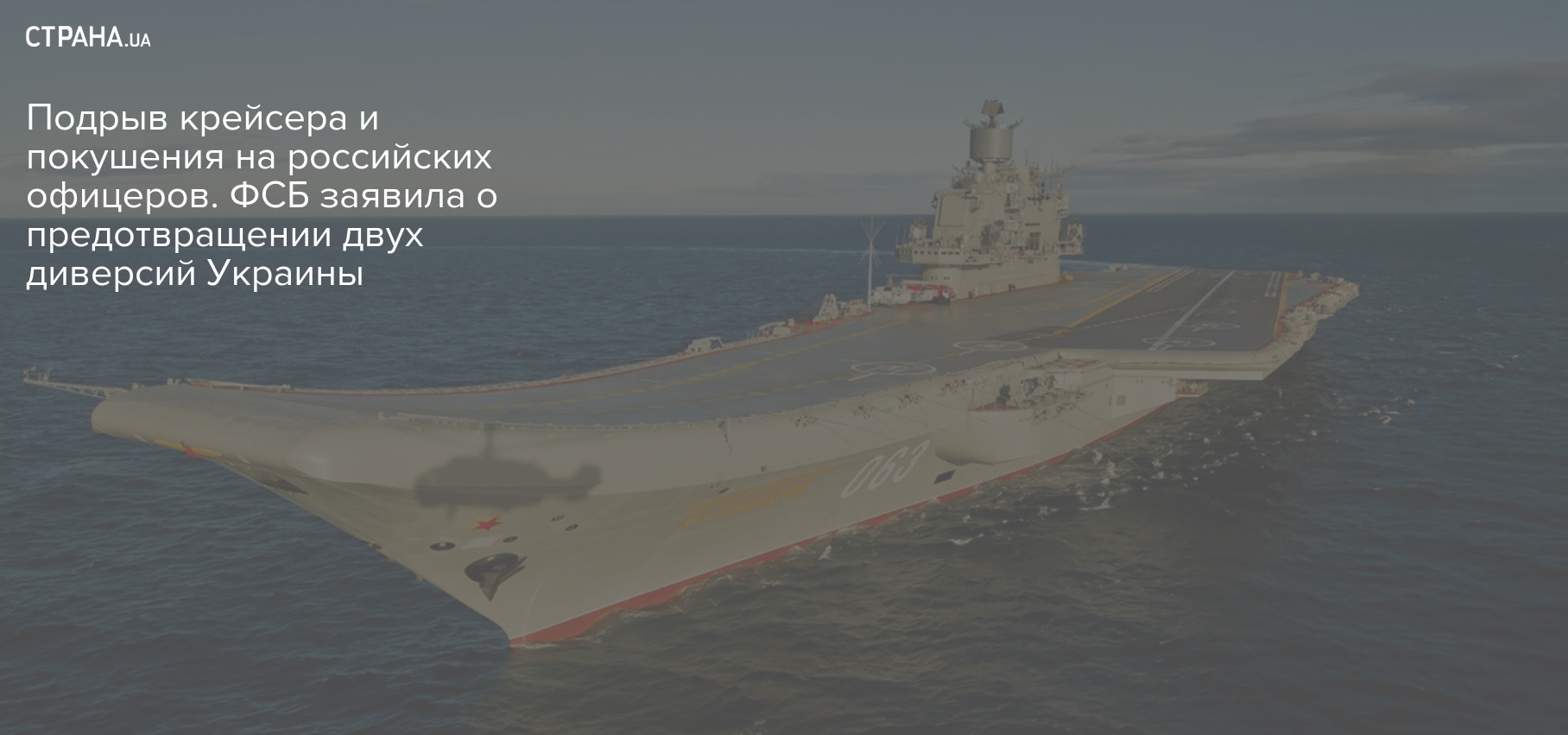Федеральная служба безопасности (ФСБ) России заявила о двух попытках диверсий Украины. В частности, была предотвращена попытка подрыва авианесущего крейсера "Адмирал Кузнецов" в Мурманске.