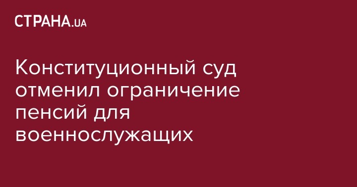 Конституционный суд признал неконституционными положения закона о пенсионном обеспечении лиц, уволенных с военной службы и некоторых других лиц. Об этом сообщает УНИАН.