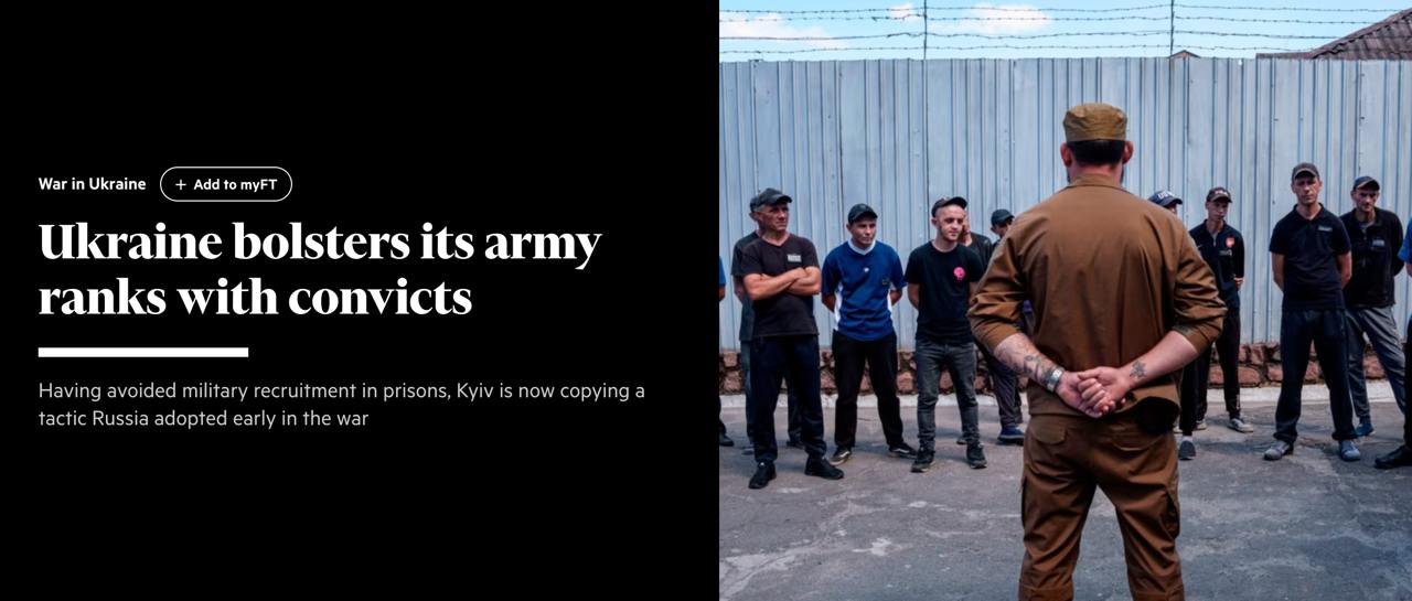 09:40 Первые заключенные, мобилизованные в ВСУ, окажутся на фронте к концу лета, сообщил Financial Times министр юстиции Денис Малюська.