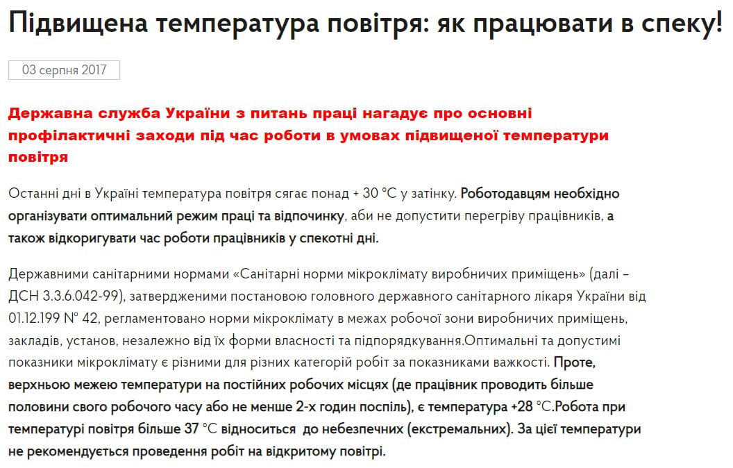 Как еще в 2017 году разъяснила Государственная служба Украины по вопросам труда (Гоструда), работать на постоянном рабочем месте можно при температуре не выше +28.