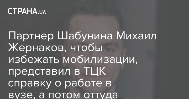 Партнер Шабунина Михаил Жернаков, чтобы избежать мобилизации, представил в ТЦК справку о работе в вузе, а потом оттуда уволился - СМИ
