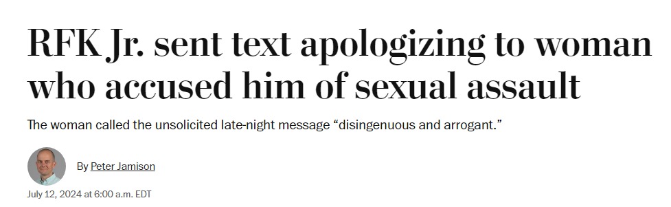 Кандидат в президенты США Роберт Кеннеди-младший извинился перед бывшей няней, которая рассказала о его домогательствах в 1990-х.