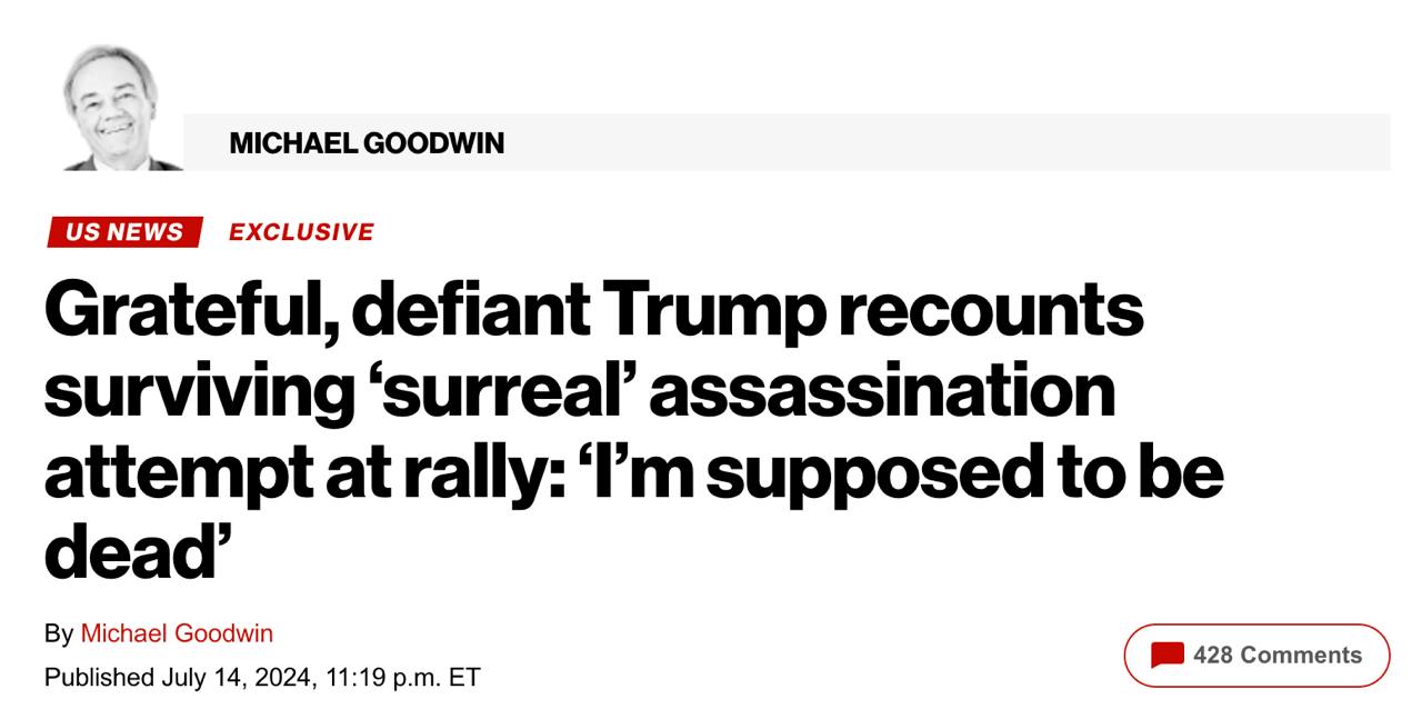 "Я должен был быть мертв". Трамп подтвердил, что от гибели при покушении его спас поворот головы
