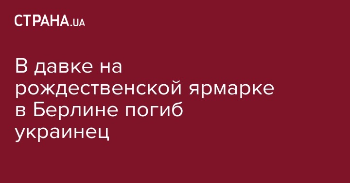 Украинский МИД заявил, что в результате террористического акта на рождественской ярмарке в Берлине вечером 19 декабря погиб гражданин Украины. Об этом сообщил украинский посол в ФРГ Андрей Мельник со ссылкой на данные немецкой полиции.
