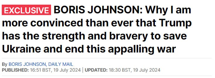 Отметим, что статья Бориса Джонсона в газете Daily Mail, где он делится своими мыслями о том, как может быть закончена война Украины и России в случае победы Трампа (он считает, что РФ можно вытеснить на линию февраля 2022 года, после чего принять Украину в НАТО, а РФ предложить восстановление отношений), в украинских, а вслед за ними и российских телеграмм-каналах была интерпретирована как "Джонсон озвучил план Трампа по окончанию войны".