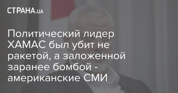 Политический лидер ХАМАС был убит не ракетой, а заложенной заранее бомбой - американские СМИ