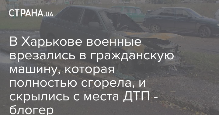 В Харькове военные врезались в гражданскую машину, которая полностью сгорела, и скрылись с места ДТП - блогер