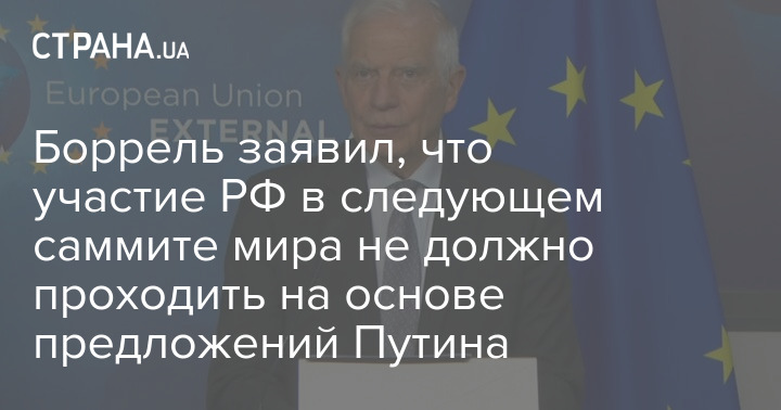 Боррель заявил, что участие РФ в следующем саммите мира не должно проходить на основе предложений Путина