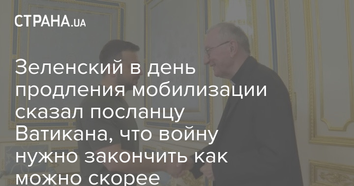 Зеленский в день продления мобилизации сказал посланцу Ватикана, что войну нужно закончить как можно скорее