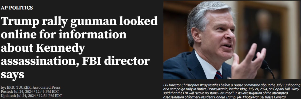 Покушавшийся на кандидата в президенты от республиканцев Дональда Трампа американец Томас Мэттью Крукс искал в интернете информацию об убийстве Джона Кеннеди.