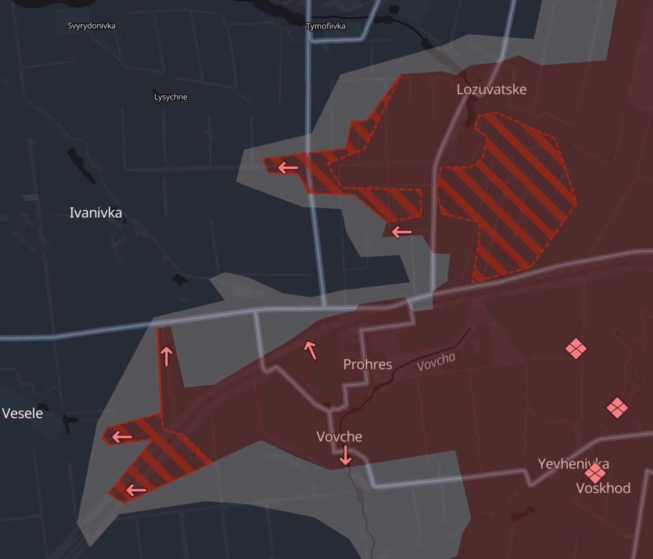 08:37 Российские войска продвинулись на Покровском направлении. Они подошли к селам Веселое, Лисичное и Тимофеевка, продвинувшись на запад от недавно захваченного Прогресса.