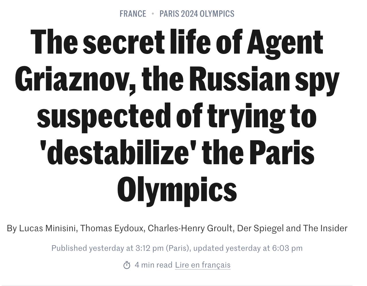 В Париже по обвинению в попытке сорвать открытие Олимпиады задержали российского кулинарного блогера, который накануне в пьяном виде рассказывал окружающим, что является агентом ФСБ.