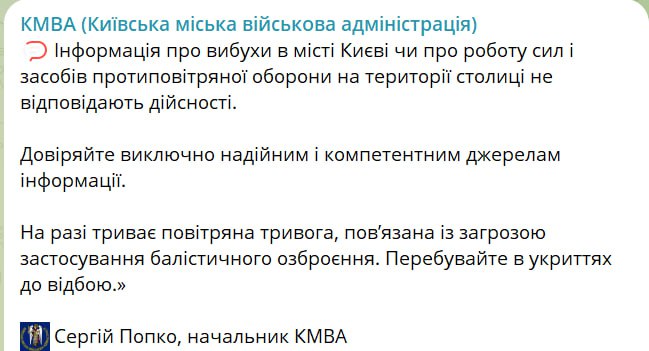 23:40 В Киеве взрывов и работы ПВО не было, сообщает КГВА.