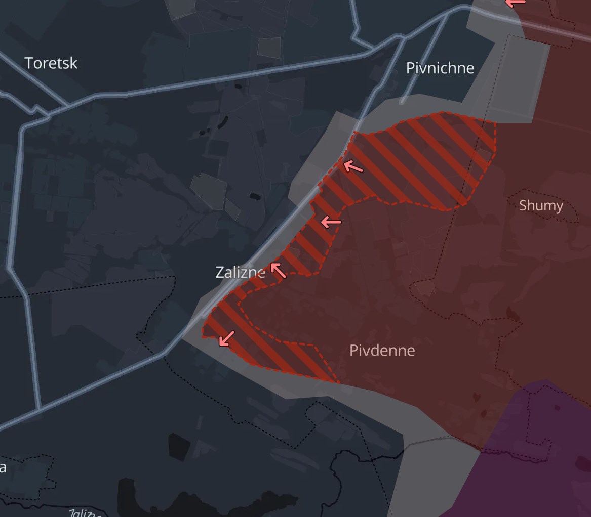 3. На Торецком направлении российские войска продвинулись в населенных пунктах Железное и Северное. Приблизившись таким образом к Торецку с востока.