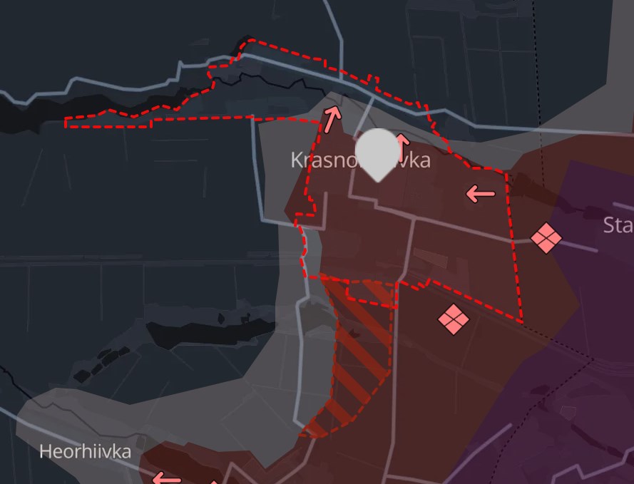 "После трех с половиной месяцев интенсивных боев российская армия вторжения захватила все соответствующие части города Красногоровка (ранее с населением 16 000 жителей) в Донецкой области. Наступление началось 15 апреля с возрождения широко обсуждаемых "танков-черепах", - написал журналист в Х и опубликовал карту.