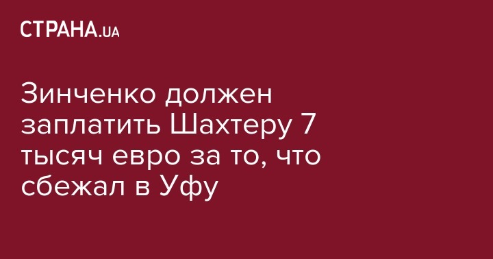Палата по разрешению споров ФИФА частично удовлетворила иск: Зинченко должен выплатить "Шахтеру" всего 7 тыс. евро - среднее арифметическое зарплаты в "Шахтёре" и "Уфе" за спорный период с июля 2014-го по июль 2015 года.