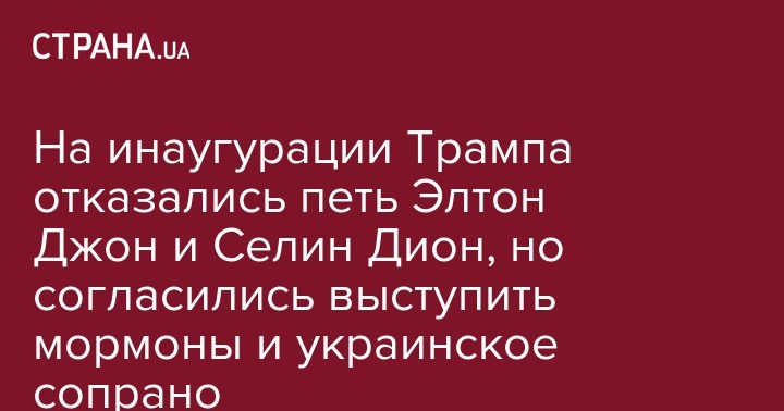 На инаугурации Трампа отказались петь Элтон Джон и Селин Дион, но согласились выступить мормоны и украинское сопрано
