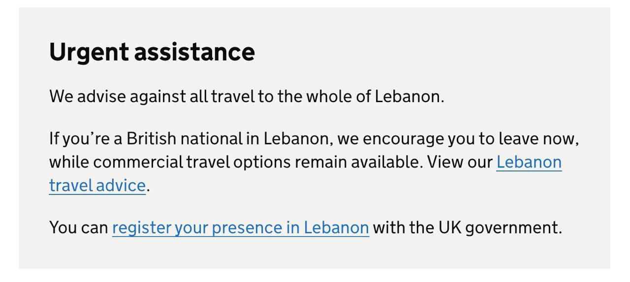 "Мы призываем тех, кто планирует покинуть Ливан, забронировать любые доступные билеты, даже если рейс вылетает не немедленно или же если пункт назначения не вполне соответствует вашим предпочтениям", - сообщается в заявлении.