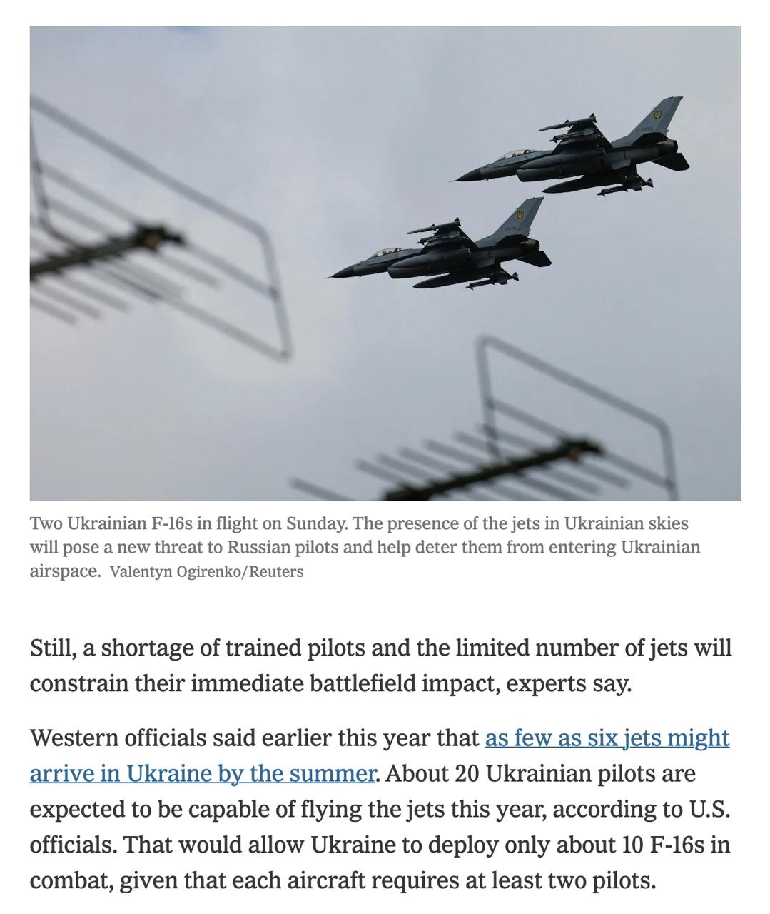 Опрошенные изданием эксперты говорят, что передача первых самолетов скорее принесет "повышение морального духа", чем практическую пользу на поле боя. А для локального превосходства в воздухе и поддержки наземного наступления нужно не меньше 12 эскадрилий с 18 самолетами в каждой.