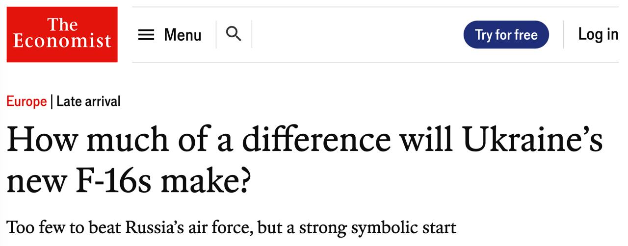 Ранее The Economist сообщал, что Украина уже получила 10 самолетов, а до конца года получит еще 10. А издание Times до этого писало о шести истребителях.