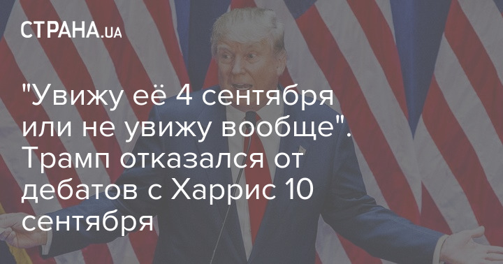 Кандидат в президенты США Дональд Трамп отказался от дебатов со своим опанентом – Камалой Харрис, которые она требует провести 10 сентября на телеканале ABC.