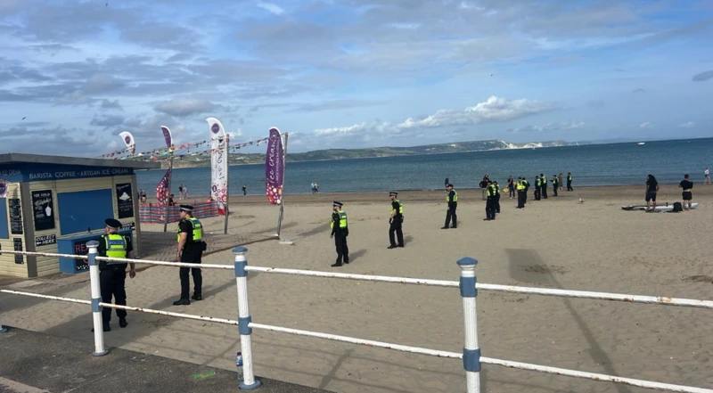 Полиция вывела с пляжа людей, протестующие пытаются прорвать полицейский кордон.