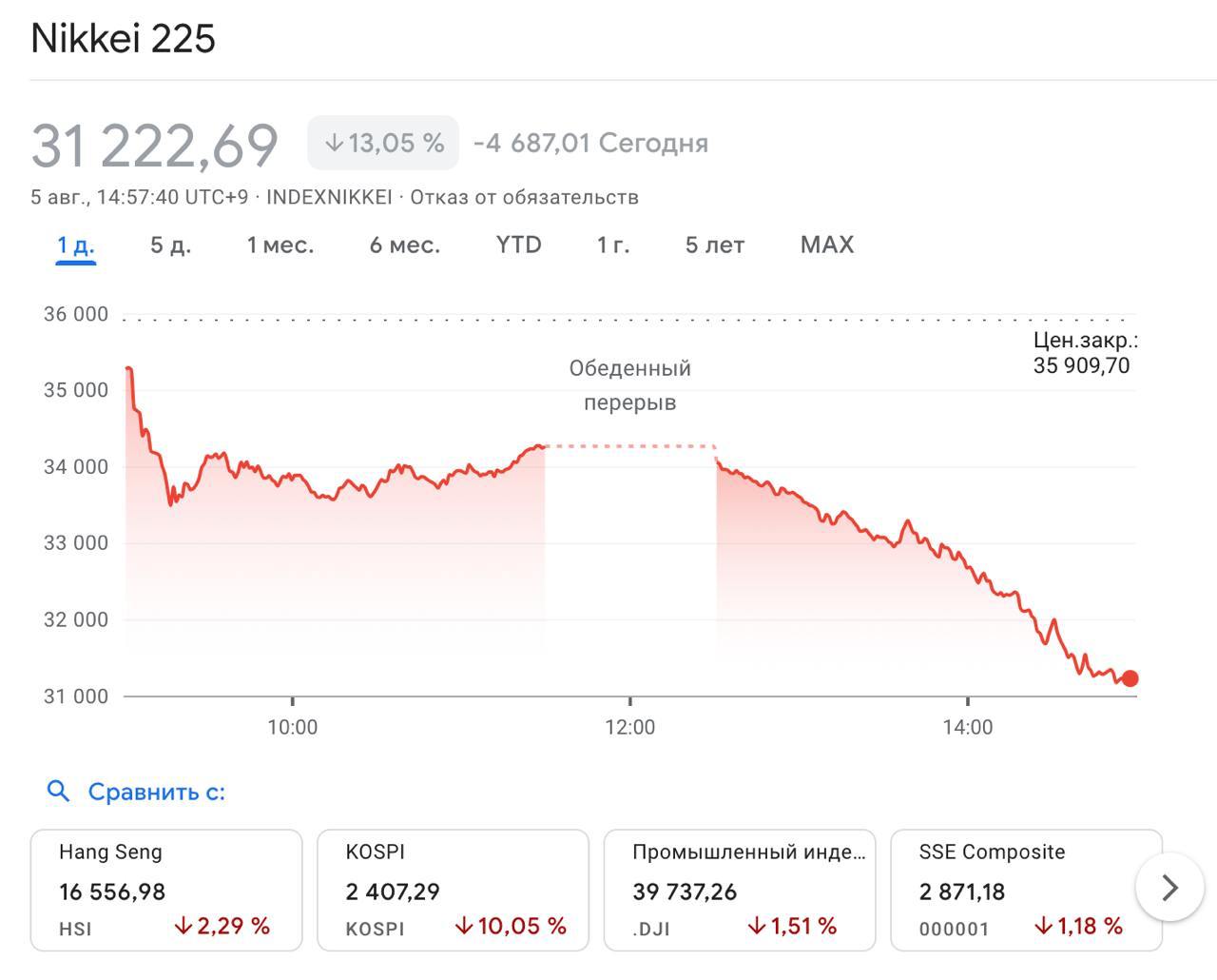 Кроме того, как свидетельствуют данные торгов, на фоне обвала мировых рынков происходит обрушение и на азиатских биржах, в частности, японских.